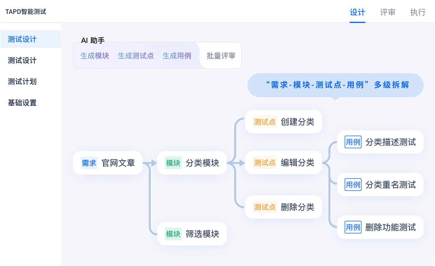 通過「需求-模塊-測試點-用例」的多級拆解,實現(xiàn)深度思考
