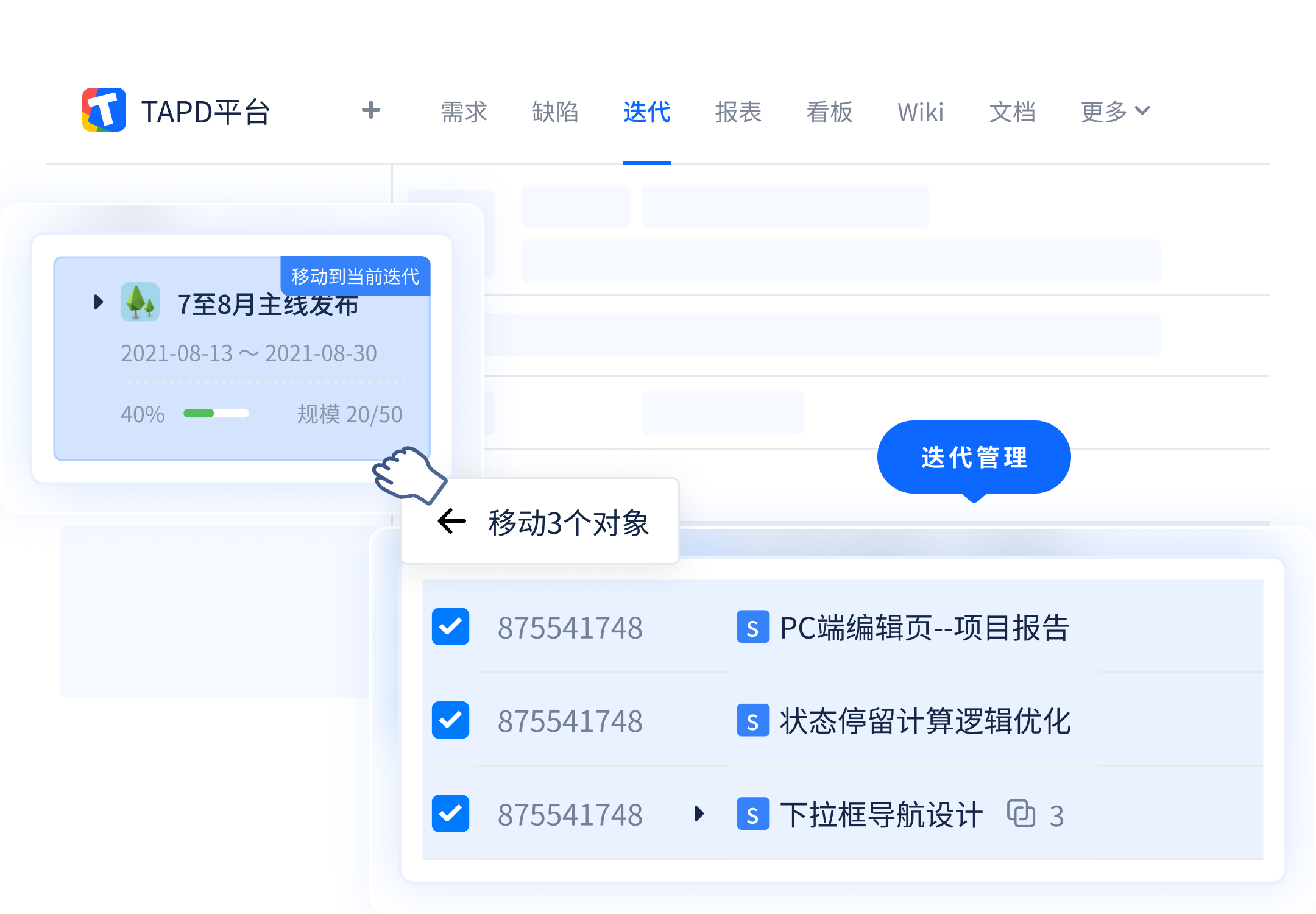 項(xiàng)目經(jīng)理首先創(chuàng)建一個(gè)新的迭代計(jì)劃,并設(shè)定迭代的目標(biāo)、開始和結(jié)束時(shí)間,然后根據(jù)迭代容量往迭代里添加本迭代規(guī)劃好的需求,并分配給對應(yīng)成員。