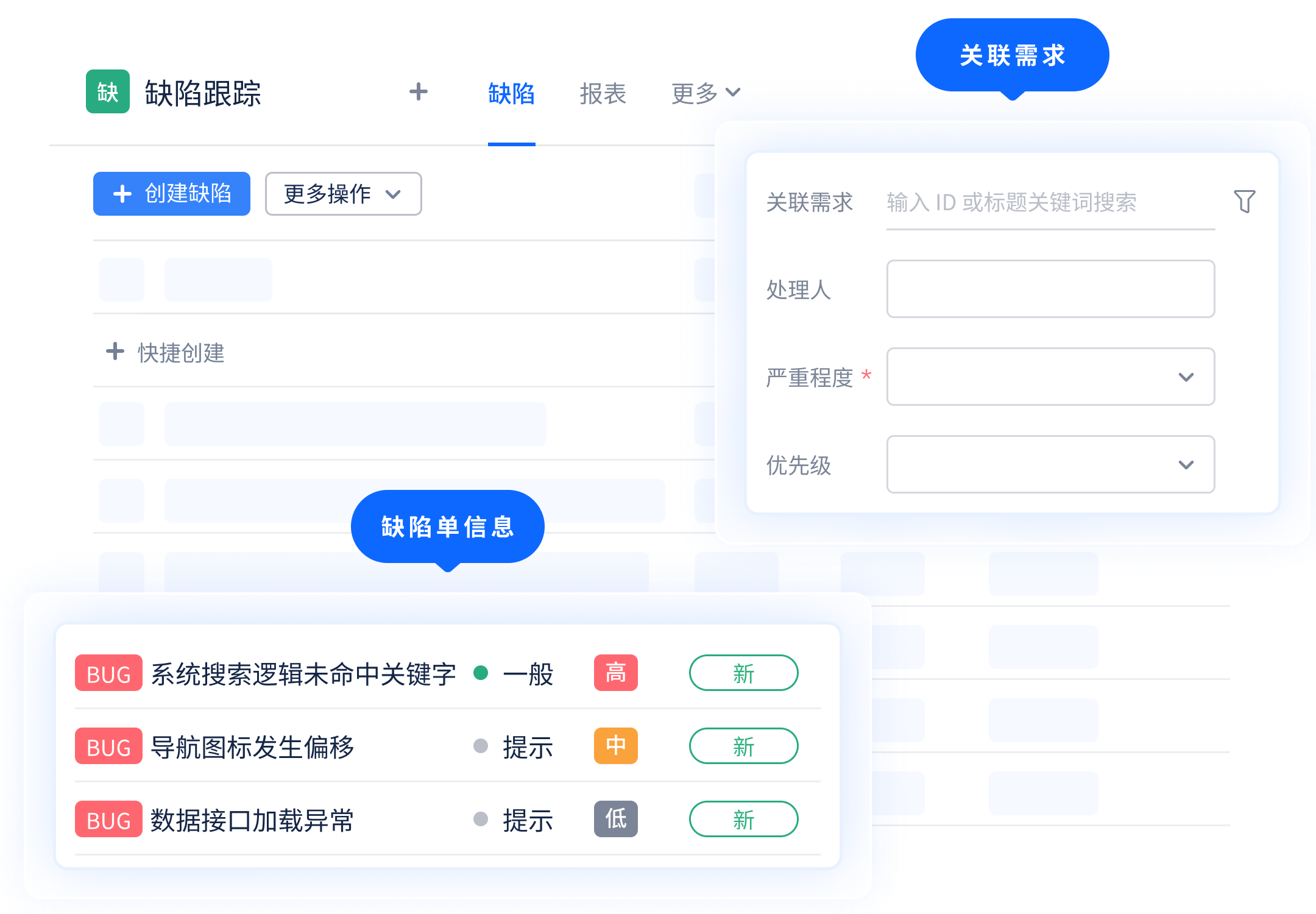 測試工程師/客服/運(yùn)營等可以使用TAPD【缺陷】進(jìn)行缺陷管理。缺陷單包含了Bug的重現(xiàn)規(guī)則、關(guān)聯(lián)需求、優(yōu)先級和緊急程度等信息。
